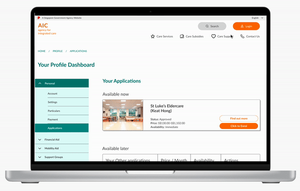 The Agency for Integrated Care (AIC) exists as the “to-go-to liason” - bridging *service providers, caregivers and patients. Their work in the community is to consolidate care services and information and make them accessible to those who need them.