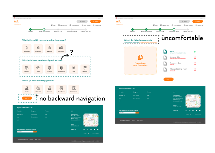 All users wanted more visibility on the different offerings and prices of care centres. They also were confused about how to navigate between pages for applications. This points to a lack of affordance due to unclear card designs for care centres.