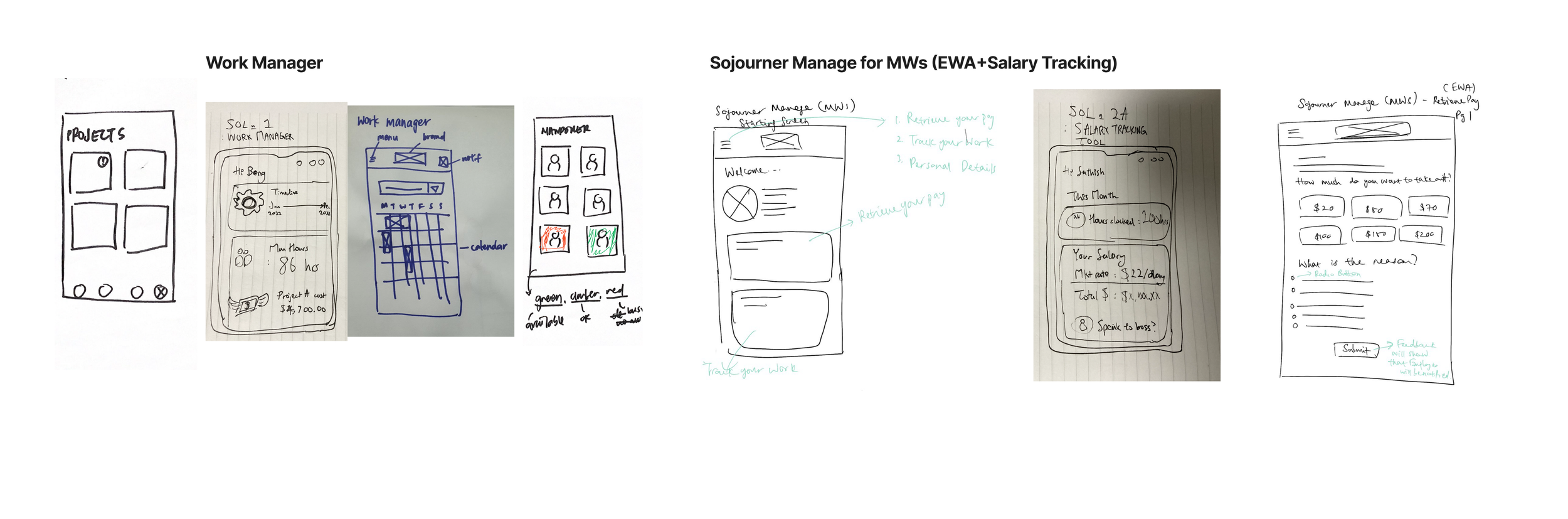 The final solution for Sojourner Manage includes 3 component: 1 mobile interface for Migrant Workers. 1 mobile + 1 web for employers