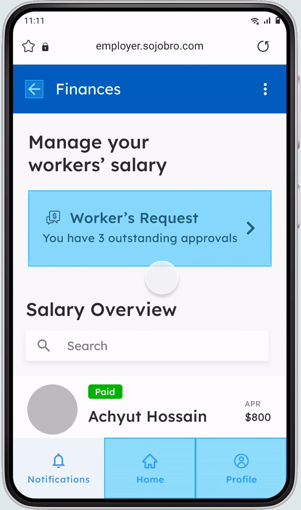 Employers can now quickly approve their workers’ requests. The visually contrasting card at the top informs employers of the new requests from their workers for their approval.